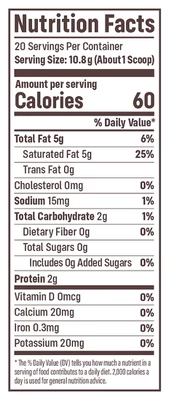 MCT Powder (Medium Chain Triglycerides from Coconut on Gum Acacia), Hydrolyzed Bovine Collagen (Types 1 and 3), Natural Flavor, Monk Fruit Extract, Enzymatically Modified Stevia.